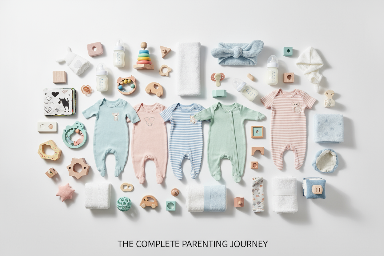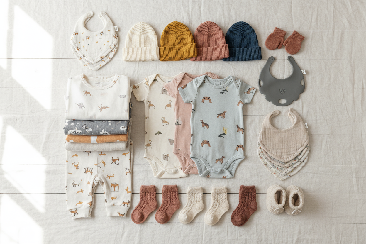 Includes onesies, pajamas, hats, socks, and accessories for different ages