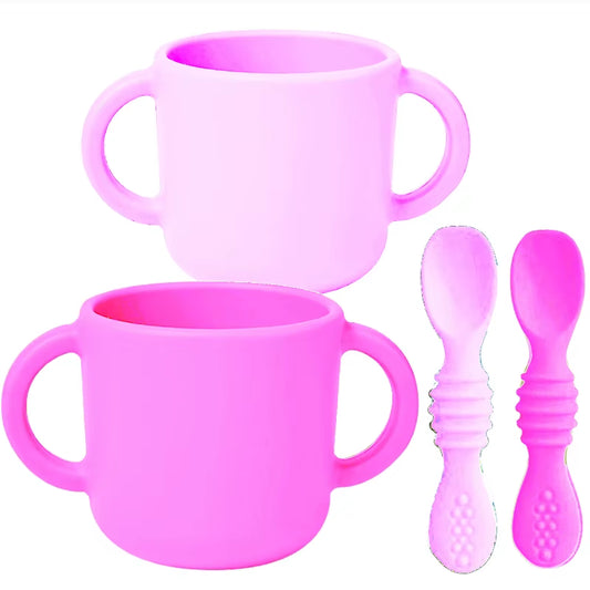 Silicone Baby Cup with Spoon - Double Handle & Leakproof